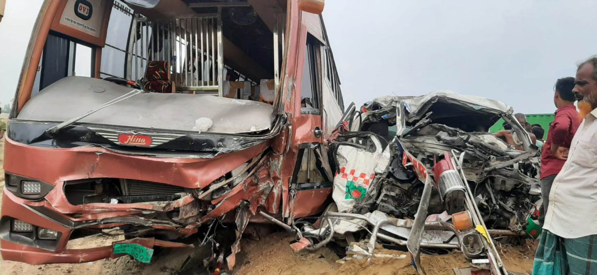 সিরাজগঞ্জে রায়গঞ্জে বাস এ্যাম্বুলেন্স মুখোমুখি সংঘর্ষে একই পরিবারের তিন জনের মৃত্যু হয়েছে। এছাড়া এ্যাম্বুলেন্সের ড্রাইভারসহ দুইজনের অবস্থা আশঙ্কা জনক। সোমবার (১ মে) বিকেল সাড়ে ৫টার দিকে মহাসড়কের রায়গঞ্জ উপজেলার কালিকাপুর জোড়া ব্রিজ এলাকায় এই দুর্ঘটনা ঘটে। নিহত তিনজনই অ্যাম্বুলেন্সের যাত্রী।
