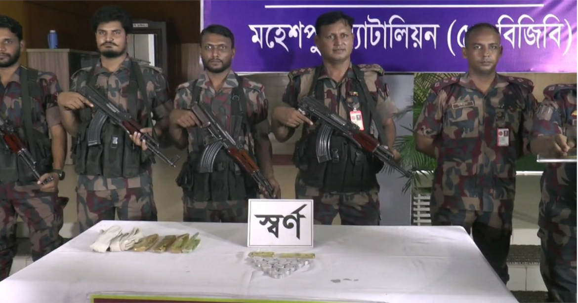 মঙ্গলবার (২২ আগস্ট) রাত সাড়ে ৮ টার দিকে ঝিনাইদহের মহেশপুরে বিজিবি–৫৮ ব্যাটালিয়ান সদরে সংবাদ সম্মেলনের মাধ্যমে এ তথ্য জানায়। উদ্ধারকৃত স্বর্ণের মুল্য ৪ কোটি ৭৪ লক্ষ ৮৮ হাজার ৭শ’ টাকা।