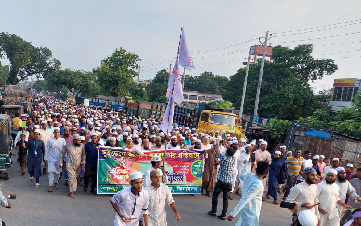 সুইডেনে পবিত্র ধর্মগ্রন্থ আল–কোরআন অবমাননা ও পোড়ানোর প্রতিবাদে ঝিনাইদহের কালীগঞ্জে প্রতিবাদ সমাবেশ ও বিক্ষোভ মিছিল অনুষ্ঠিত হয়েছে।