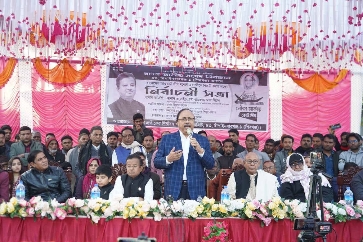 আগামী ৭ জানুয়ারি ২০২৪ দ্বাদশ জাতীয় সংসদ নির্বাচনে চাঁপাইনবাবগঞ্জ(শিবগঞ্জ) আসনে . লীগ মনোনীত নৌকা প্রতীকের সংসদ সদস্য প্রার্থী ডা. সামিল উদ্দিন আহমেদ শিমুলকে বিজয়ী করার লক্ষ্যে মঙ্গলবার (২ জানুয়ারি) শিবগঞ্জের মনাকষা বাজারে নৌকা প্রতীকের নির্বাচন পরিচালনা কমিটি আয়োজিত নির্বাচনী সভায় প্রধান অতিথির বক্তব্যে তিনি এসব কথা বলেন।