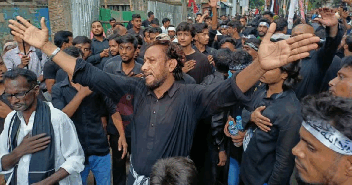 ইমাম হোসাইনের কারবালার প্রান্তরে শাহাদাতের স্মরণে আয়োজিত এই মিছিলে অংশ নেয় শিশু, কিশোর, নারী ও পুরুষ—সব বয়সি শিয়া সম্প্রদায়ের মানুষ।