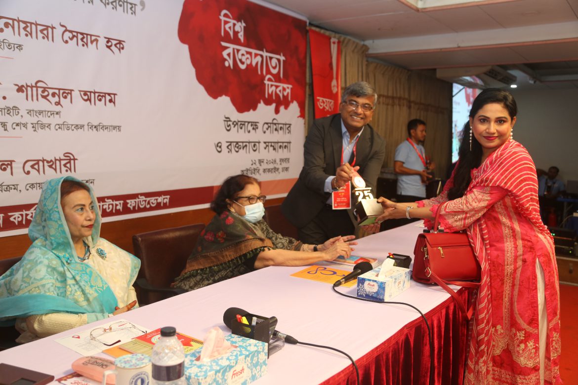কোয়ান্টাম স্বেচ্ছা রক্তদান কার্যক্রমের প্রধান সমন্বয়ক মাদাম নাহার আল বোখারীর সভাপতিত্বে সন্ধ্যায় সেমিনার ও সম্মাননা পর্বে স্বাগত বক্তব্য রাখেন স্বেচ্ছা রক্তদান কার্যক্রমের পরিচালক মোটিভেশন এম রেজাউল হাসান। অনুষ্ঠানে ৫০ বার ও ২৫ বারের স্বেচ্ছা রক্তদাতাদের সম্মাননা ও ক্রেস্ট দিয়ে কৃতজ্ঞতা জানানো হয়।