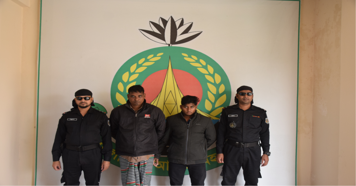 আটককৃতরা হলেন, চাঁপাইনবাবগঞ্জ সদর উপজেলার জাইরা মোরল গ্রামের শরিফুল ইসলাম ওরফে ধুলু মিয়া ও তার ছেলে মোমিনুল ইসলাম।