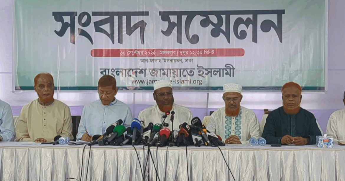জুলাই জাতীয় সনদের ভিত্তিতে আগামী জাতীয় সংসদ নির্বাচন আয়োজনসহ ৫ দফা দাবিতে ১ থেকে ১২ অক্টোবর কর্মসূচি ঘোষণা করেছে বাংলাদেশ জামায়াতে ইসলামী।