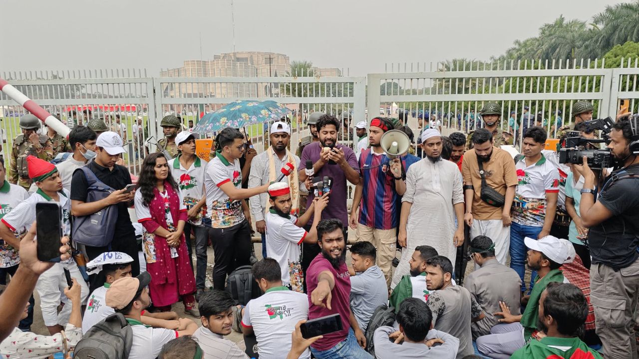 স্থানীয়রা জানায়, বিক্ষোভকারীরা আজ শুক্রবার সকালে জাতীয় সংসদ ভবনে প্রবেশের ফটক টপকে ভেতরে প্রবেশ করেন। একপর্যায়ে তারা দক্ষিণ প্লাজায় মঞ্চের সামনে চলে যান। তাদের বাধা দেওয়া চেষ্টা করেন আইনশৃঙ্খলা রক্ষাকারী বাহিনীর সদস্যরা। পরে বিক্ষোভকারীরা অতিথিদের চেয়ারে বসে পড়েন। দুপুর ১২টা পর্যন্ত তারা সেখানে অবস্থান করছিলেন।
