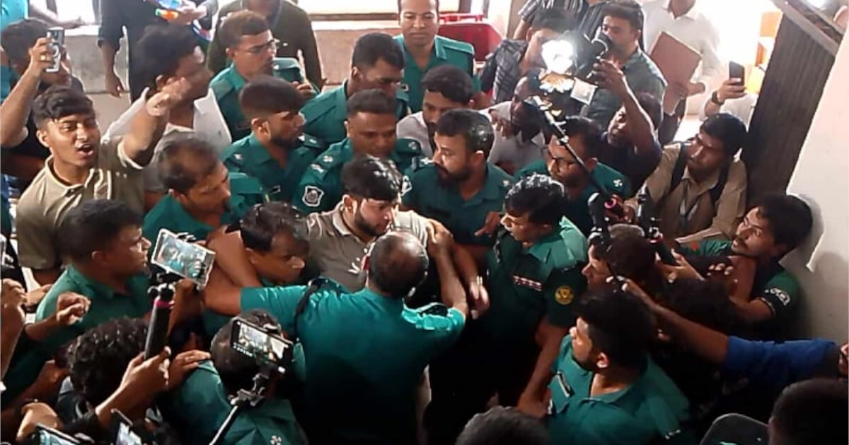 এরপর, এজলাসে তোলার পর শুনানিতে রাষ্ট্রপক্ষ তার ৭ দিনের রিমান্ড মঞ্জুর চেয়ে শুনানি করেন। আসামি পক্ষের আইনজীবীরা তার রিমান্ড বাতিল ও জামিন চেয়ে শুনানি করেন। উভয়পক্ষের শুনানি শেষে আদালত তার এ রিমান্ড মঞ্জুর করেন।